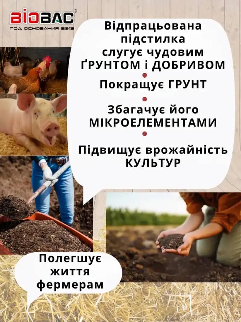 Вони зменшують вміст аміаку в повітрі, роблять середовище безпечним для тварин і людей, а також прискорюють переробку гною.